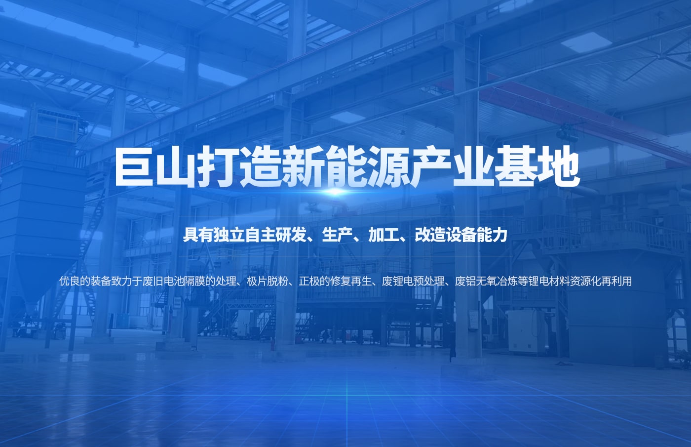 河南巨山新能源科技有限公司,成立于2018年。位于河南省滑縣先進制造業開發區人民路長虹大道交叉口智能園,是一家集廢舊鋰電材料回收加工、銷售于一體的綜合性實體企業。  現公司依托河南巨峰環??萍加邢薰鞠冗M的工藝、精湛的技術和優良的裝備致力于廢舊電池隔膜的處理、極片脫粉、正極的修復再生、廢鋰電預處理、廢鋁無氧冶煉等鋰電材料資源化再利用;現有鋰電回收方面專 利技術約30項。  于2023年12月已啟動項目:“年5萬噸隔膜處理”“年3萬噸極片脫粉”“年5萬噸正極修復再生”“年3萬噸廢鋰電池預處理”“年5萬噸廢鋁冶煉”等。目前一期投資額為3.5億人民幣,占地面積為21192平方米;總建筑面積為22550平方米;計容建筑為42385平方米。主要建設內容為廢舊鋰電池、極?回收處理,廢電池鋁?氧冶煉,正極修復再?,隔膜回收處理;汽車電動化是實現“碳達峰、碳中和”的重要國家戰略,隨著新能源汽車產業發展規劃,項目前景廣闊,發展空間大。  本公司具有獨立自主研發、生產、加工、改造設備能力,擁有數百項國家發明和新型實用專 利技術,并成為國家十三五重大科技專項領 導者。本項目現已得到市、縣、區各級領導的支持,獲得經營類、稅收類、購置類等多項優惠政策。